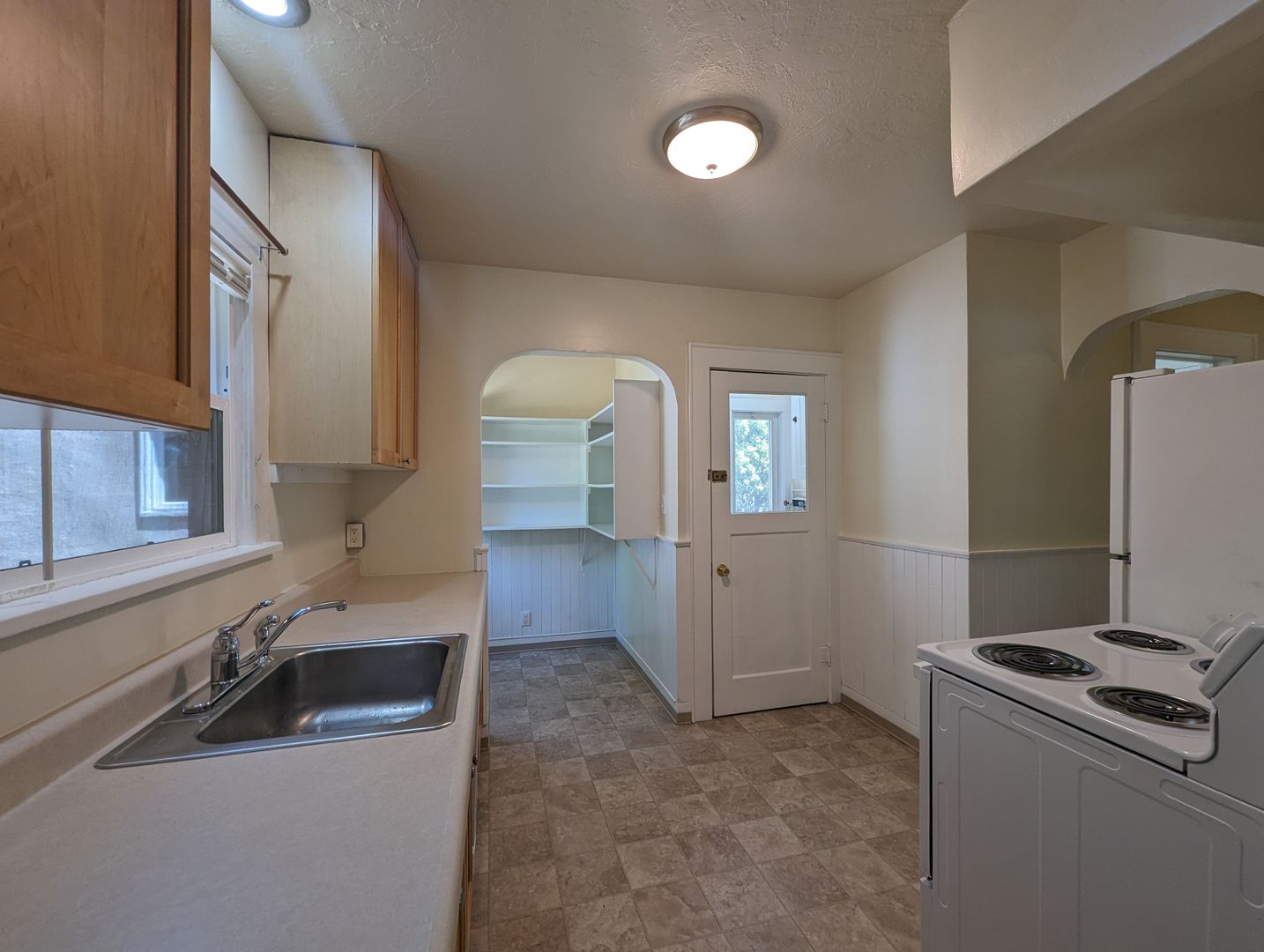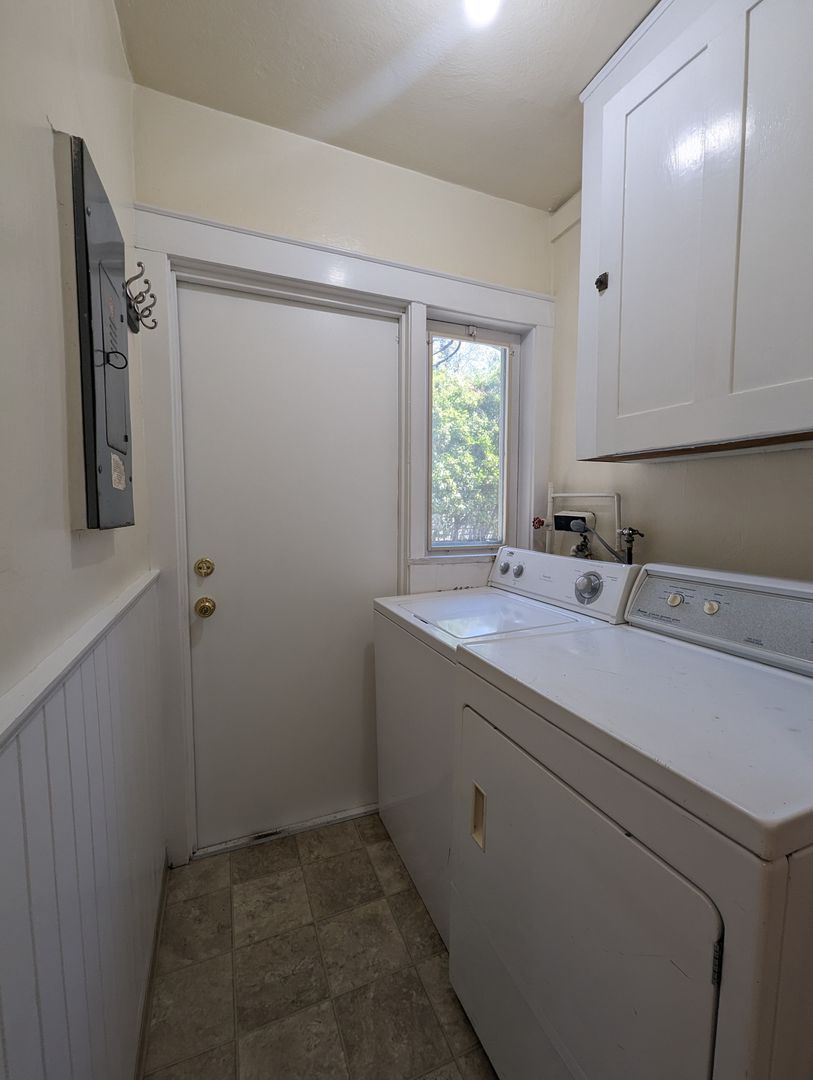 This cute 2 bedroom, 1 bath bungalow style home offers 1000 Sq Ft of living space, tons of character with a decorative fireplace and solid surface flooring throughout. Off the kitchen is a mud room with washer/dryer and separate pantry space. The bathroom has plenty of built in storage cabinets, updated sink, and nice tub/shower combo. Landscaping is included!